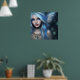 Digital konst som skildrar en vacker eterisk, mystisk magisk älv med ljusblå ögon och hår. generativ hjärt