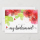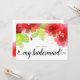 Röda blommor och kursivt skript stil handskrivet kalligrafi blommigt vår bröllop "Kommer du att bli min bridesmaid?"-kort. En söt som visar röda blommor och rosa blommor med grönt löv.