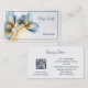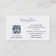 Det här unika affärskortet för professionell har en eterisk genomskinlig blåblomma, guld-turkos blomma i blått ram. Utformning av elegant för konstnärer, spa, bröllopsfixararna, evenemangsplanerare, kosmetologer, skönhetssalon... med skannerbar fyrkantskod på baksidan.