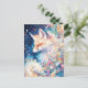 This captivating postcard features a serene red fox with its eyes closed in a moment of pure, dreamlike tranquility. The artwork is rendered in a vibrant watercolor style, utilizing a deep midnight blue backdrop that makes the fox's warm orange and cream fur truly pop. A lush arrangement of pink, purple, and yellow wildflowers sweeps across the scene, accompanied by shimmering golden light particles and drifting petals. With its mystical vibe and rich, painterly textures, this piece captures a sense of celestial magic. This postcard is a perfect choice for sending a heartfelt message, a unique birthday greeting, or a "thinking of you" note to any nature or fox lover.