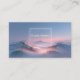 Define your brand with unmatched tranquility and ethereal grandeur using this captivating business card. The design centers on a breathtaking snow-capped mountain landscape, where jagged peaks and dark forests emerge from a sea of soft, glowing pink and orange mist. The entire scene is bathed in the warm, diffused light of a sunrise or sunset, creating a powerful, sophisticated color contrast against the cool blue sky. A sharp, clean white neon-style square frame sits centrally, providing a luminous, futuristic window for your essential information. This artwork beautifully captures the quiet solitude and refined majesty of a secluded alpine scene, blending natural realism with a minimalist, glowing accent. This business card is ideally suited for a luxury travel agency promoting scenic mountain retreats, a high-end spa or wellness brand emphasizing clarity and serenity, or a fine art print seller specializing in dramatic, atmospheric works. It would also perfectly suit a boutique hotelier whose ambiance is defined by breathtaking scenic views, or a corporate consultant who wants to convey a sense of calm and vision.
