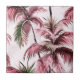 Das Bild präsentiert ein ätherisches Muster aus stilisierten Palmenblättern in sanften Rosé-, Grün- und Beigetönen, die sich geschickt auf einem hellen Hintergrund überlagern. Es vermittelt eine träumerische Ruhe und eine subtile tropische Eleganz, die Wärme und Exotik mit einer modernen Ästhetik verbindet.