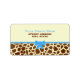 En adressetikett för babydusch med en girafftryckdesign över grund med blå trim och blå båge. Anpassa den blå och bruna texten överst med ditt namn och adress. Leta efter matchande inbjudningar i kategorin "Baby" i Jill's Paperie.