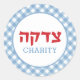 Etikett för Blue Gingham Tzedakah Pushka Charity B