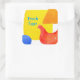 Ett fyrkantigt dekal för fångst i öga med fet färg och former med röd kyckling, triangel för orange, kvadratisk gult och royalets blå cirkel som är färgad med vattenfärg. Du kan anpassa texten efter dina behov.