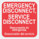 Lakan med sex, 3 x 3-tums AKUT DISCONNECT, SERVICE DISCONNECT-etiketter med spanska undertexter. Desconexión de emergencia, desconexión del servicio.