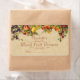 En illustration av en blandning av frukter - plommon, körsbär, citroner, äpplen, persikor, på en beige bakgrund med text av rostfri färgad, som är gjord av vintage. Märket är avsett för konservframställning eller buteljering av sylt, geléer och konserver. Du kan lämna datumutrymmet till skriva i, eller ändra till det datum då sylt eller gelé tillverkades.