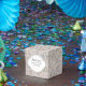 Etikett för geologi Sten Struktur med valfri text Presentaskar