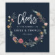 Etikett för marinblå Wildblommor Bröllop Vin