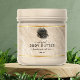 Etikett för kroppssmör med gräddbakgrund och lägg till ditt logotyp-alternativ med elegant-manusgrafi. Perfekt guld och vit produktmärkning för ett företag som tillverkar smör från hemmabrott.