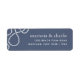 Returetiketterna för kustnära chic har returadressen i vit skrift på en blå grått-bakgrund med vit loopande nautiska rep.