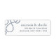Returetiketterna för kustnära chic har returadressen i mjuk, blå text i marinen på en skarp vit bakgrund, accentuerad med vit loopande nautiska rep.