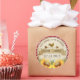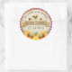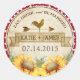 Solblommor med röd gingham-bakgrund och en land-symbol med tupp-väder-vane-etikett för bröllop.