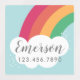 En vattentät etikett för små barn med vattentätt skoldekal som innehåller en kraftig vibrerande regnbåge med vitt fluffmoln och kalligrafi Namn och barns mobila nummer under. Lägg till detta i olika produkter från back to school för enkel märkning med personlighet och känsla. Underbar för lunchlådor, vattenflaskor, påsar för bok, mappar, bokar, handdukar och andra personliga artiklar. Se efter om Stacey Meacham samordnar tillbehören och ytterligare variationer i färg.