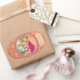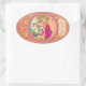Ett mönster från en segrande fransk parfym-etikett. Det är en man och kvinna i en blomsterträdgård, mannen ger henne ro. De är inbyggda i en mycket ornerad guld ram med rosa juveler och rulla. I vackra färg i guld, fuschia, blått, turkos och grönt. Underbar för upparbetning eller insamling.