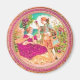 Ett mönster från en segrande fransk parfym-etikett. Det är en man och kvinna i en blomsterträdgård, mannen ger henne ro. De är inbyggda i en mycket ornerad guld ram med rosa juveler och rulla. I vackra färg i guld, fuschia, blått, turkos och grönt. Underbar för upparbetning eller insamling.