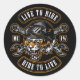 Etikett med arg, tigerhuvud i hjälm och glasögon för biker och korsningar