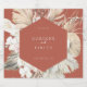 Vacker, rustik boho-chic, torkad handflatan frond, ro och orkidéformad geometrisk ram på bakgrunden av orange färg, personlig drycketikett. Designad för att matcha vår bohemiska Oasis Bröllop Collection.