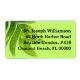 Begränsa gröna skeppningsetiketter med fet, svart text och ett enda tropiskt löv-format. Lägg till 3-5 linjer text efter behov över en tropisk handflatan-bakgrund. Texten justeras mot högerna. Du kan anpassa texten till andra storlekar. Etiketterna skrivs ut när du ser dem!