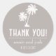 Etiketter för Tack i handflatan.. Det här roligt tropiska tack du märker är perfekten som tillägg till ditt tack för ditt öresbröllop. Perfekt för den brud och trimma som har sin bröllop i Hawaii, Mexiko eller öarna. Utformningen har en roligt handflatan träd. Besök WindyCityStationery.com för hela raden "Handflatan Träd" i ett stort antal färg och matcha "Handflatan Träd"-porten frimärke, tack vare kort, returetiketter och mycket annat.