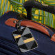 EN : Travel in style and easily identify your luggage! This luggage tag features your trendy geometric pattern in black, gray, and gold.