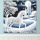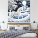 En himmelsk häst intrikat dekorerad, stående nära ett magiskt slott omgivet av månbelysta skogar, utstrålar drömlika och fantasifulla vibrationer. Scenen förenar elegans, mystik och lugn nattlig skönhet.