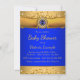 Etisk afroamerikansk furstebebis duschtillställning med söt etniskt afroamerikansk prinsbebis som bär en vacker guldkrona och en kunglig blå blöja på en vacker kunglig blå och guldfärg glittrig juvelbakgrund. Dessa eleganta kungliga blå och guldfärgade furstebebis duschtillställningar kan enkelt anpassas för ditt evenemang genom att helt enkelt lägga till dina detaljer i den typsnittsstil och formulering du väljer. Detta är en tryckt design utan riktig glitter, juveler, folie etc.