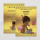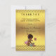 Baby shower för flickan för elegant anpassningsbarpersonligvintage tackar den etniska dig att card mallen för flickor med en härlig vintageillustration av en gullig och förtjusande afrikansk amerikanflicka med den stilfulla rosa blöjan och en rosa pilbåge i henne hår med att skugga rosett band. Hon ringer dig på ett gammalt rött retro ringer till något att säga tackar dig! Hon är hållande lite en resväska, och hon den besynnerliga nallen lutar mot den - hon är allt som packas upp och som är klar för henne ankomsten!! Bakgrunden är ett glamoröst fauxguld omkullkastar bilder med flott guld- sparrar gränsar och brun text för mörk. Chic trendiget som är glamorös, flickaktigt, roligt, innegrejen, nyckfull som man har råd med personlig/personifierad beställnings- baby shower, tackar yous mallar för flickor. Dekorerat på båda sidor. Den tillbaka/omvända sidan har den samma designen. Dubbla sid printing/beklär och drar tillbaka. Om du behöver någon hjälp som skräddarsy din produkt, behar kontaktar mig till och med mitt lager och, jag ska är lycklig att hjälpa. BEHAGA NOTERAR: - Alla inbjudningar på Zazzle har lägenheten utskrivaven bilder - inte verkligt guld att omkullkasta.