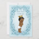Eleganta blå vintage prins pojk babyshower inbjudningskort med etniskt tema. En vacker vintage illustration av en söt och bedårande afroamerikansk baby pojke med stilfull guldkrona, vit blöja och fantasifulla kanin slippers på en chic blå bakgrund med en klassisk, utsmyckad virvel och blombladskant. Söta, trendiga, roliga, fashionabla och prisvärda Baby Shower inbjudningar för din lilla Prins themed shower. Dubbelsidig tryckning. Om du behöver hjälp med att anpassa din produkt, vänligen kontakta mig via min butik och jag hjälper dig gärna. Original konst ©delightful-doodles.com. OBS! - Dessa är platta tryckta grafik.