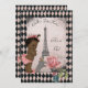 Vintage etniska prinsessor och Eiffeltornet baby shower-inbjudningar. Eleganta personliga skräddarsydda konst-designade baby shower-inbjudningar för flickor med en söt, romantisk, rustik, slitna, grunge, shabby chic-kollage i rosa, svart och grått med en söt och bedårande antika brunhudade / mörkhyad afroamerikansk prinsessa för babyflickor med rosa krona och skrynklig rosa blöja och kanin-tofflor som står bredvid Eiffeltornet. Ooh La La, Det är en flicka. Det finns en vacker rosa ros, antika poststämpel och Eiffeltornet-poststämpel och vackra utsmyckade dekorationselement och en slitna, grungiga harlekinmönstrad ram. Texten Ooo La La är i en båge ovanför Eiffeltornet. Denna stilrena, fantasifulla, flickaktiga, franska Paris-inspirerade design är trendig och modern med en rolig, funky vintage-känsla. Glamorösa, prinsessor Paris-tema baby shower-inbjudningar. Chic, glamorösa, klassiska, fashionabla inbjudningar, perfekta för vår- eller sommar shower, men kan användas för