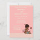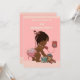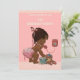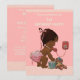 Elegant skräddarsydd personlig vintage etniskt tema för första födelsedagsfirande-inbjudan mall för afroamerikanska småbarnsflickor med en vacker vintage-illustration av en söt och bedårande liten flicka med stilfull rosa blöja och en rosa rosett i håret med släpande band. Hon pratar i en gammal röd retro-telefon och inbjuder sina gäster till sin fest. Hon håller en liten resväska och hennes excentriska teddybjörn lutar sig mot den - hon är helt packad och redo för sin fest! Bakgrunden är en snygg rosa med en klassisk rosa-chevron kant. Chic, trendig, glamourös, flickig, rolig, mode, fantasifull, prisvärd personlig / personlig skräddarsydd baby flicka Första födelsedagsfest inbjudan mall. Dekorerad på båda sidor. Baksidan / baksidan har samma design. Dubbelsidig tryckning / fram- och baksida. Om du