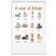 En vacker kalender för ett barns rum. Tolv Kattunge visar sig som årets månader. Färgstark och gnister med vattenfärgbakgrund