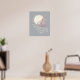 Denna förtrollande illustration från Maurice Sendaks klassiker "Where the Wild Things Are" fångar Max när han ger sig ut på en magisk resa i sin privata båt under en stjärnklar himmel. Med ett lila segel vitt utbrett och månen skinande klart seglar Max sömlöst genom tiden och navigerar både det vida havet och kosmos. Texten "...and he sailed back over a year and in and out of weeks and through a day..." understryker det tidlösa och gränslösa äventyret som barndomens fantasi kan skapa. Användningen av pastellfärger och mjuka linjer ger scenen en drömlik kvalitet och inbjuder läsarna att driva in i världen av vilda saker och under.