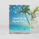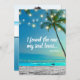 Det här tropiska strandbröllopet Spara datumkortet innehåller romantiskt handflatan träd och sträng ljus och din egen bild och bröllop i trendigets handskrivna skrift med citatet från Sång romantiska Sång i Bibeln: "Jag hittade den som min själ kärlek." Baksidan av kortet har en blå symbol med fotot och sparar datuminformationen. Enkel att anpassa. Fotografi och design av T.K. Goforth, alla höger reserverade. Kontrollera matchande objekt i min Tropical Beach and String Ljus Bröllop Collection i mitt Zazzle-arkiv: