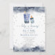 Boba och Flaskor "ett baby brinner" bubbelte, babyduschen med babydusch med illustrationer med konetti och blå vattenfärgaccenter överst och grund.