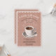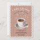 Denna chic vattenfärg kaffekopp baby shower inbjudan har en varm kaffekopp och söta hjärtformade ångande bubblor mot en brun bakgrund med en rutig och spetsig kant. Texten är lätt att anpassa.