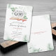 Fira välsignelsen av det nya livet med denna vackert designade inbjudan till kristna babyduschar. Den här inbjudan visar en bibel i mitten med en elegant och en mjuk grön bakgrund, där ord ovan säger: "Ett Guds barn är på väg!" Perfekt för att hedra Guds värdefulla gåva, denna design återspeglar tillit, tacksamhet och glädje. Idealisk för dem som vill fira ställe Gud först och fira livets mirakel på ett meningsfullt sätt, andlig. Denna inbjudan är ett val av perfekt för religiösa babyduschar eller firande och sprider kärlek och välsignelser när man samlar familj och vänner för detta speciella tillfälle.