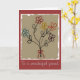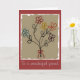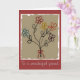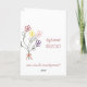 Charming-födelsedagskort med min ursprungliga blommigt med blandad media med en barnliknande målning av fem enkla, fem petala blommor - var och en i olika färg: en akvblått, en djup röd, en gyllene gult en orange och en violett. Varje blomma har en stam som består av en enda stam med två löv och buketten är bunden av en liten röd garnbåge. Bakgrunden till målningen har grovt kant och ett brunt utseende på åldrasen skapar att det känns som om det hade målats för länge sedan. Jag har skapat det här anpassadet som ett födelsedagskort, men det skulle också vara lämpligt för många olika tillfälle eller bara för varje gång du vill skicka någon lite leende.