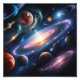 En rymdbild med planeter, stjärnor och galaxer i vackert, äkta färg
