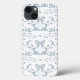 Konstruktionen visningar ett symmetriskt mönster med fjärilar, blommigt och hjärtformer i blå nyanser på vit bakgrund. Den här typen av design är estetiskt tilltalande och kan användas för tapet eller tyg.
