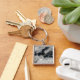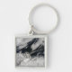 Ett blek grått askmoln blåser från toppmötet fyrkantig silverfärgad nyckelring
