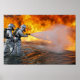 Ett brandsläckningsteam för rädding av flygplan försöker spränga en bränder