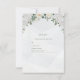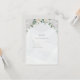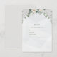 Den här OSA kort har en mjuk, elegant stil med en pastellpalett i färg som domineras av grönt- och vita nyanser. Överst finns en vacker arrangemang av vita och gräddblommor, inklusive ro och andra ömtåliga blommor, som är sammanflätade med grönt löv. Namn visas på en framträdande plats i mitten i en snyggt, kursiv stil, med en illustration av det intertwinterade bröllop ringar under namn. Den övergripande utformningen är sofistikerad och romantisk och lämpar sig för ett bröllop firande. F002