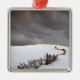 Ett brutet staket Along ett snö täckt fält Julgransprydnad Metall