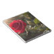 Ett dynamiskt röd ros, symbolisera kärlek och pass anteckningsblock
