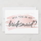 Minimalistiskt penseldrag frieri kort. Utformning av penseldrag i faux foil struktur på vit rosa, och kommer du att vara min bridesant i modernt teckensnitt.