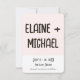 Ett enkelt, modernt sätt att spara datumdesignen. På framsidan finns en illustration av att en brud och en brudgumm går hand i hand med "spara datumet"-meddelandet. Utformningens baksida följer färg-temat rosa, och vit. Det har bruden och brudgummen namn i stort djärvt brev överst. Och på grund följer datum och lokaliseringsinformation.