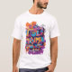 En händelse i färg springa. på en vit t-shirt med svart, rosa, blått, orange och lila färger. texten på skjortan ska innehålla tms på ovansidan och kolorpaloza under den. Graffiti känner sig i en vektor stil