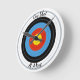 Behålla med den här snyggten och motiveringsväggklockan. Den här klockan innehåller en klassisk målbakgrund för arkeriet och den inspirerande frasen "One Shot at a Time" är perfekten som läggs till i vilket arkiv som helst.