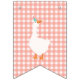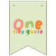 Den här söta och moderna födelsedagsbuntningsdesignen har en blå illustration av rosa och grönt med två gäss och en underbar typografi. Perfekt för din lilla "ett fånig goose" första födelsedag.